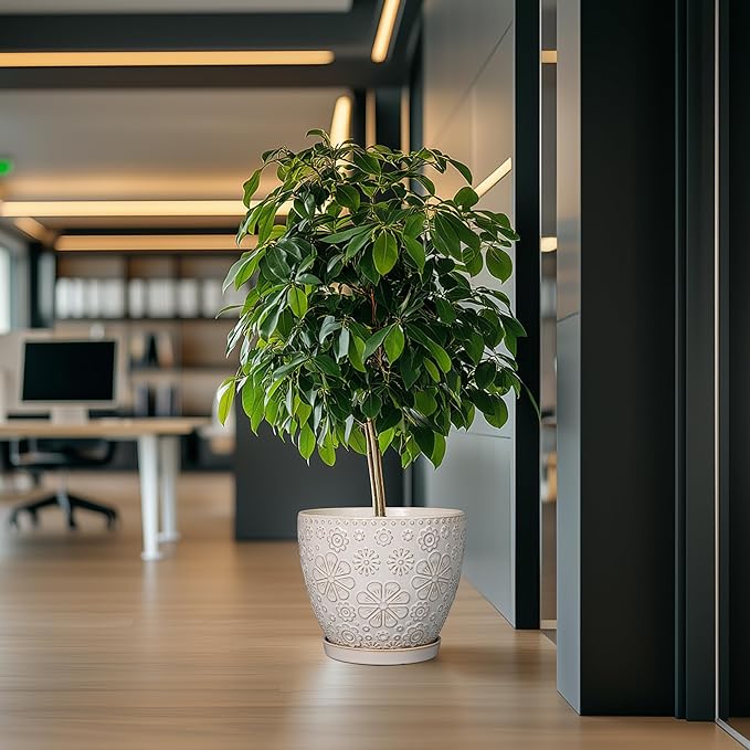 • Stylish Appearance: Our ceramic planter has a white main colour and a beautiful embossed petal pattern on the surface, elegant appearance making it ideal for home decor, garden decor and office decor